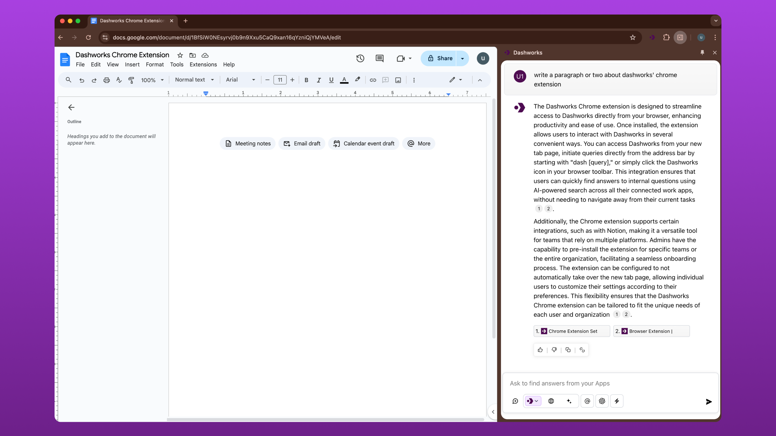 3. **✍️ Create draft documents**: Start drafting a doc while working in Google Docs or Confluence.