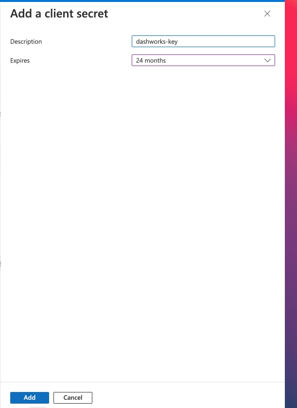 Copy the Value of the newly created secret key, this will be required in the SSO creation process on Dashworks app